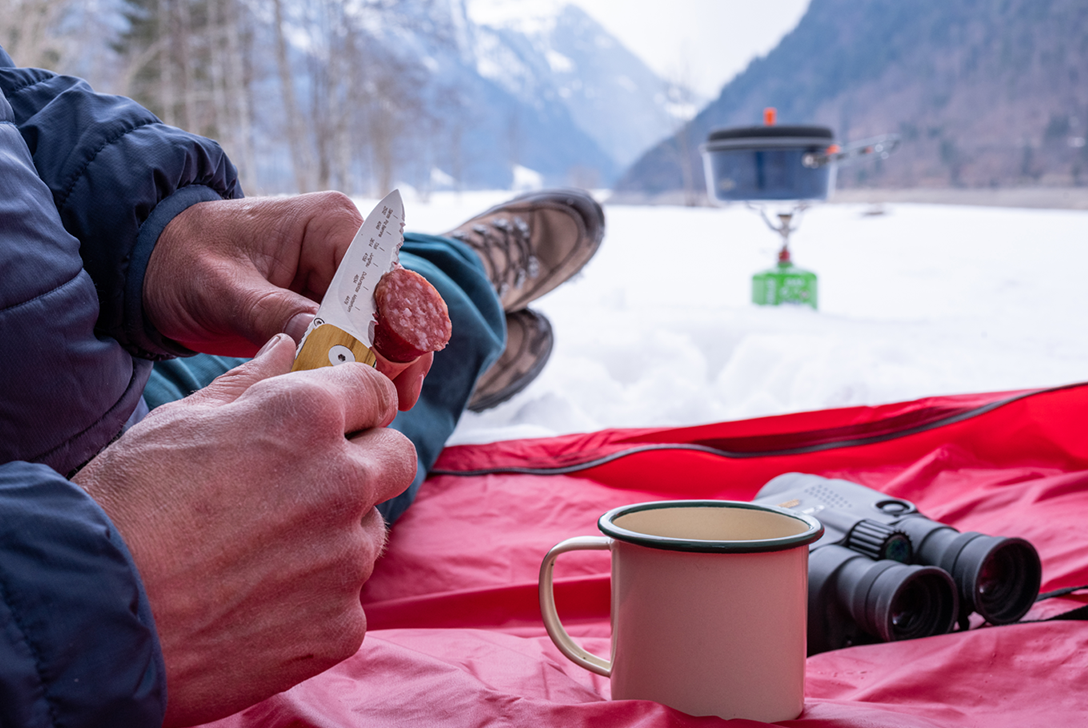 Jennys Tipp: Das Dasein in der Natur zählt mit zu meinen Lieblingsaktivitäten. Egal ob es regnet oder die Sonne vom Himmel herabstrahlt, jede freie Minute versuche ich draussen zu verbringen. Das Klappmesser Maloja Olive bildet für mich die Sehnsucht nach Abenteuer ab. Es vereint Funktionalität mit einem optisch zu Wind und Wetter passenden Aussehen. Die Berge auf der Klinge bilden da nur noch die treibende Kraft, den nächsten davon gleich zu erklimmen und damit das nächste Abenteuer zu starten. Und psst... ebenfalls cool zu wissen, ist, dass dieses coole Messer vom jüngsten Messermacher der Firma PanoramaKnife designt wurde.